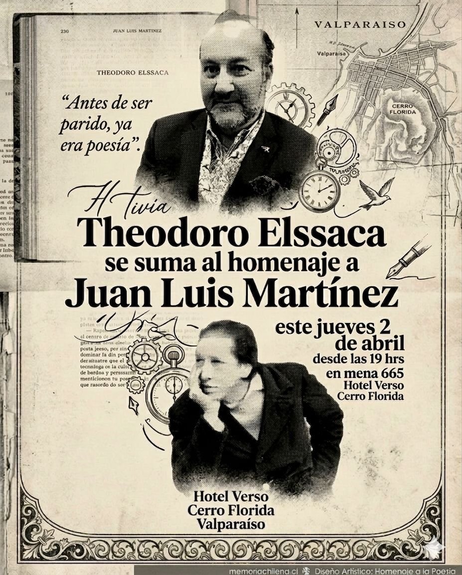 En esas instancias Ennio Moltedo leyó para nosotros parte de su libro testimonial de edición póstuma La línea azul (Altazor), donde me dedica el ensayo “Canto para celebrar a Theodoro Elssaca”.