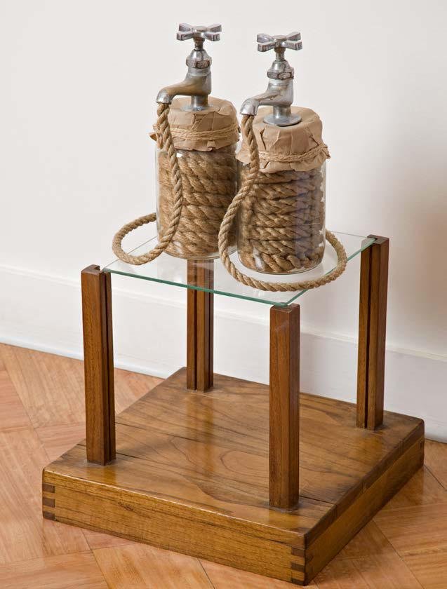 - Es una caja de 19 x 13 cm con frascos conteniendo tierra chilena etiquetados «Mistral», «Neruda», «Huidobro», acompañados de certificados de defunción falsos plastificados: el objeto-tierra certifica la «muerte» literal del canon poético nacional.