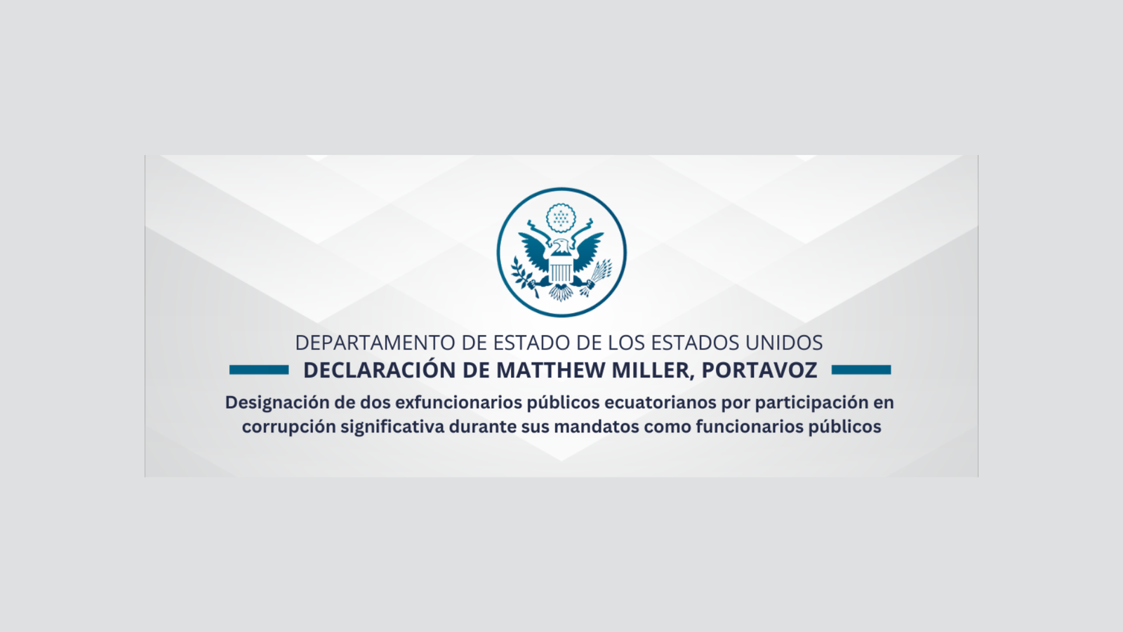 Los Estados Unidos apoya a los ecuatorianos, incluidos los miembros de la sociedad civil y los periodistas de investigación, comprometidos con aumentar la transparencia gubernamental y la rendición de cuentas de los funcionarios públicos corruptos. Los esfuerzos para combatir la corrupción, incluso en los contratos públicos, ayudan a garantizar que el gobierno cumpla con sus ciudadanos. Esta designación también reafirma nuestro compromiso de luchar contra la corrupción global, incluso en los niveles más altos del gobierno.