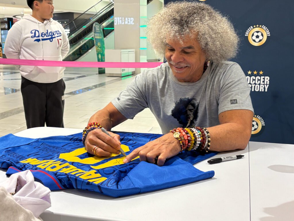 Tuvimos la oportunidad de dialogar largo y tendido con un prócer del balompié cafetero, el ídolo samario Carlos «El Pibe» Valderrama que fiel a su estilo distendido y fraterno compartió con el gran contingente que se acercó hasta la ciudad de East Rutherford, New Jersey para compartir con el otrora genio de la pelota.