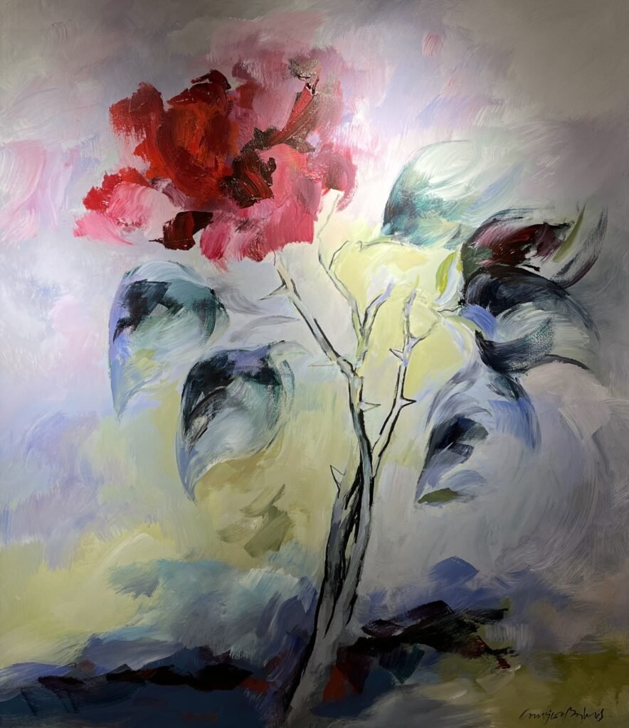 Sin embargo, los tres artistas proceden de manera diferente. En las obras de Concepción Balmes, encontramos una cercanía a la naturaleza, donde la artista ha buscado la expresividad de las flores.