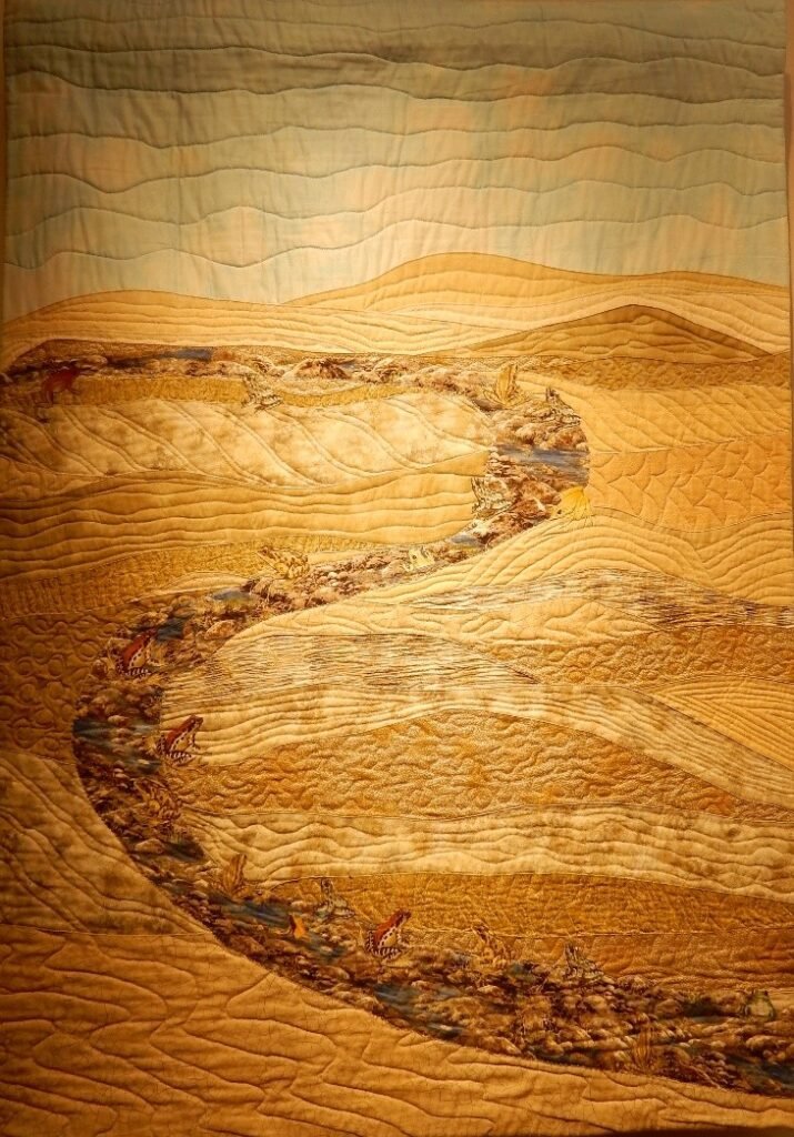 La muestra textil, “Flora, Fauna y Paisaje”, ha sido expuesta durante dos años (mayo 2021 a mayo 2023) en seis galerías en Estados Unidos y también en el Museo de Quilting más importante de ese país: The National Quilt Museum ubicado en Paducah, Kentucky. Realmente llegar allí ha sido y es un honor para nosotras. Hoy tenemos el placer de compartirla con ustedes en Viña del Mar. En diciembre lo haremos en la Casa de la Cultura de Rancagua… y también estuvimos durante dos meses con gran afluencia de público, en el Palacio Schats de Providencia, Santiago, Chile.