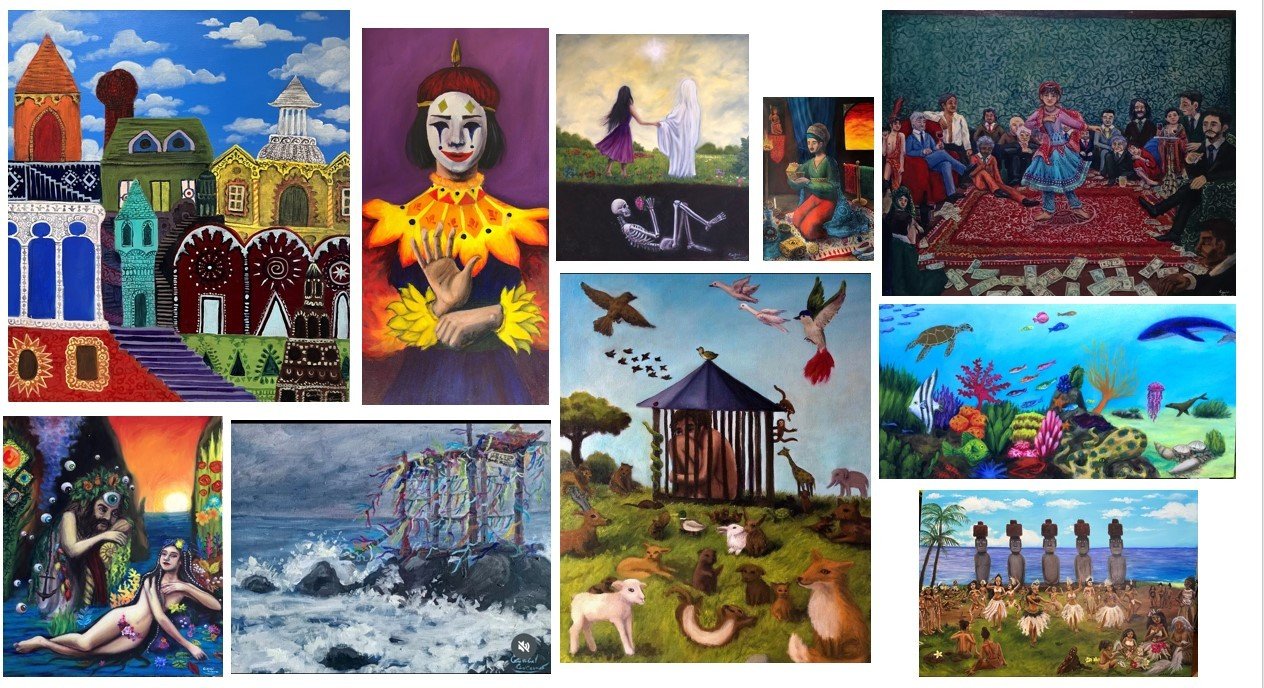 Respecto de la actual exposición, la muestra presenta 18 obras en que el artista busca contar una historia, expresando el arte en sus pinturas con un estilo único que pueda llevar a las personas a imaginar, a investigar y a interesarse más por aprender.