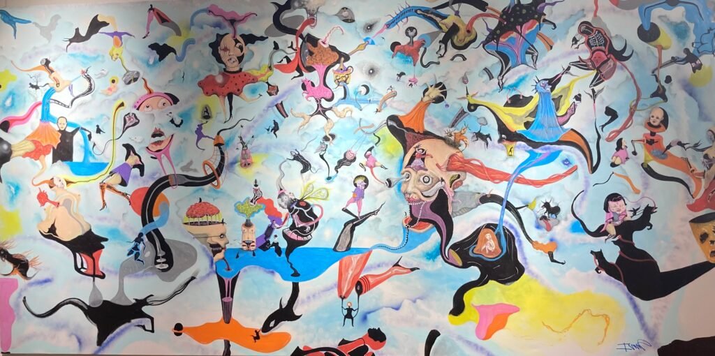 La muestra consta de 13 obras de gran formato, llenos de color y esencia desde la mirada y reinterpretación de artistas que aceptaron ser parte de esta provocación artística, escogiendo cada uno a otro gran artista en quien inspirarse, desde el barroco hasta el Pop Art, pasando por la corriente surrealista.