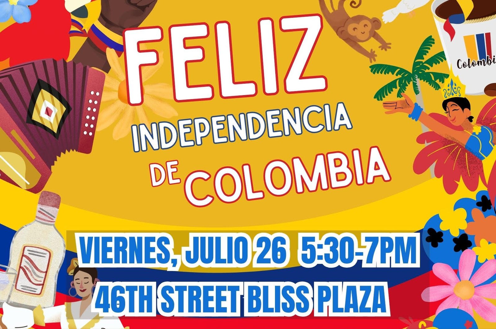 26 de julio, Sunnyside, Nueva York: Sunnyside Shines BID se complace en celebrar el Día de la Independencia de Colombia y su vibrante y creciente comunidad, donde numerosos negocios de colombianos, especialmente a lo largo de Queens Boulevard y la avenida Greenpoint, contribuyen diariamente a mejorar la calidad económica y de vida en nuestra área a través de sus servicios, productos y empleos.