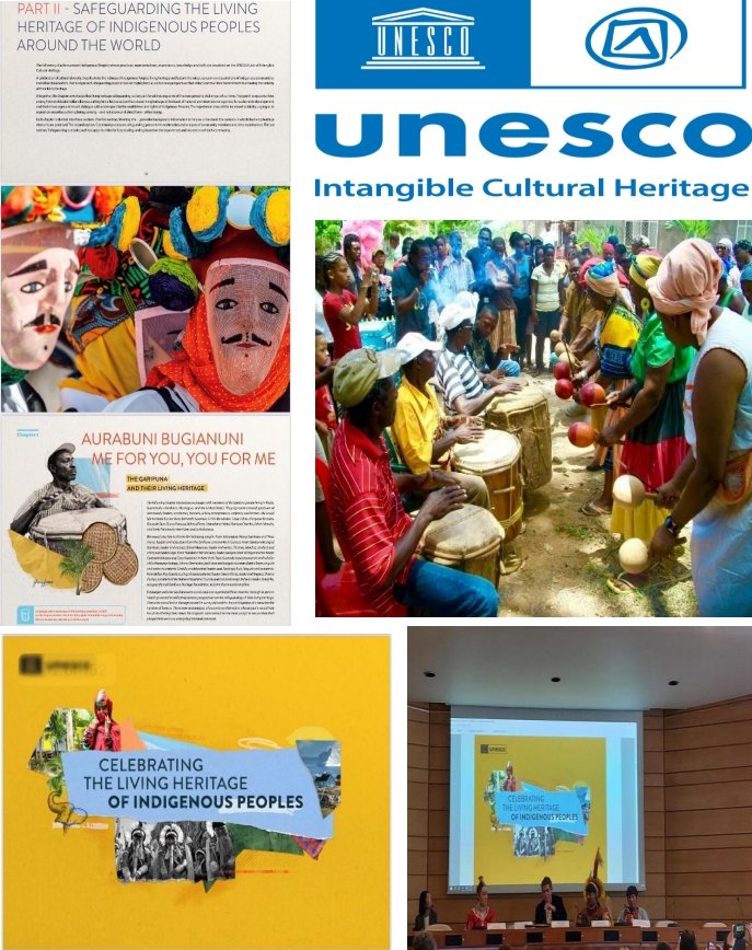 En el marco del décimo período de sesiones de la Asamblea General de los Estados Partes de la Convención de 2003 para la Salvaguardia de los Intangibles Patrimonio Cultural (11 al 12 de junio de 2024), en evento paralelo se hizo el lanzamiento de la publicación de la UNESCO. ‘Celebrando el patrimonio vivo de los pueblos Indígenas’ que se celebró en Sede de la UNESCO, París, el 11 de junio de 2024. En 2023 UNESCO lanzó la iniciativa de hacer Estudio de Casos sobre los pueblos Indígenas que están en lista de Patrimonio Intangible de la Humanidad, en el marco de los veinte años de la Convención para la Salvaguardia del Patrimonio Cultural Inmaterial (2003). Con el objetivo de escuchar la situación de su patrimonio cultural vivo desde la propia voz de los pueblos Indígenas. Entre los ochos pueblos nominados del mundo fueron seleccionados los Garinagu, después de 23 años de la proclamación de UNESCO como obra maestra (2001) y fue incluida en la lista de Patrimonio Intangible de la Humanidad en el 2008.