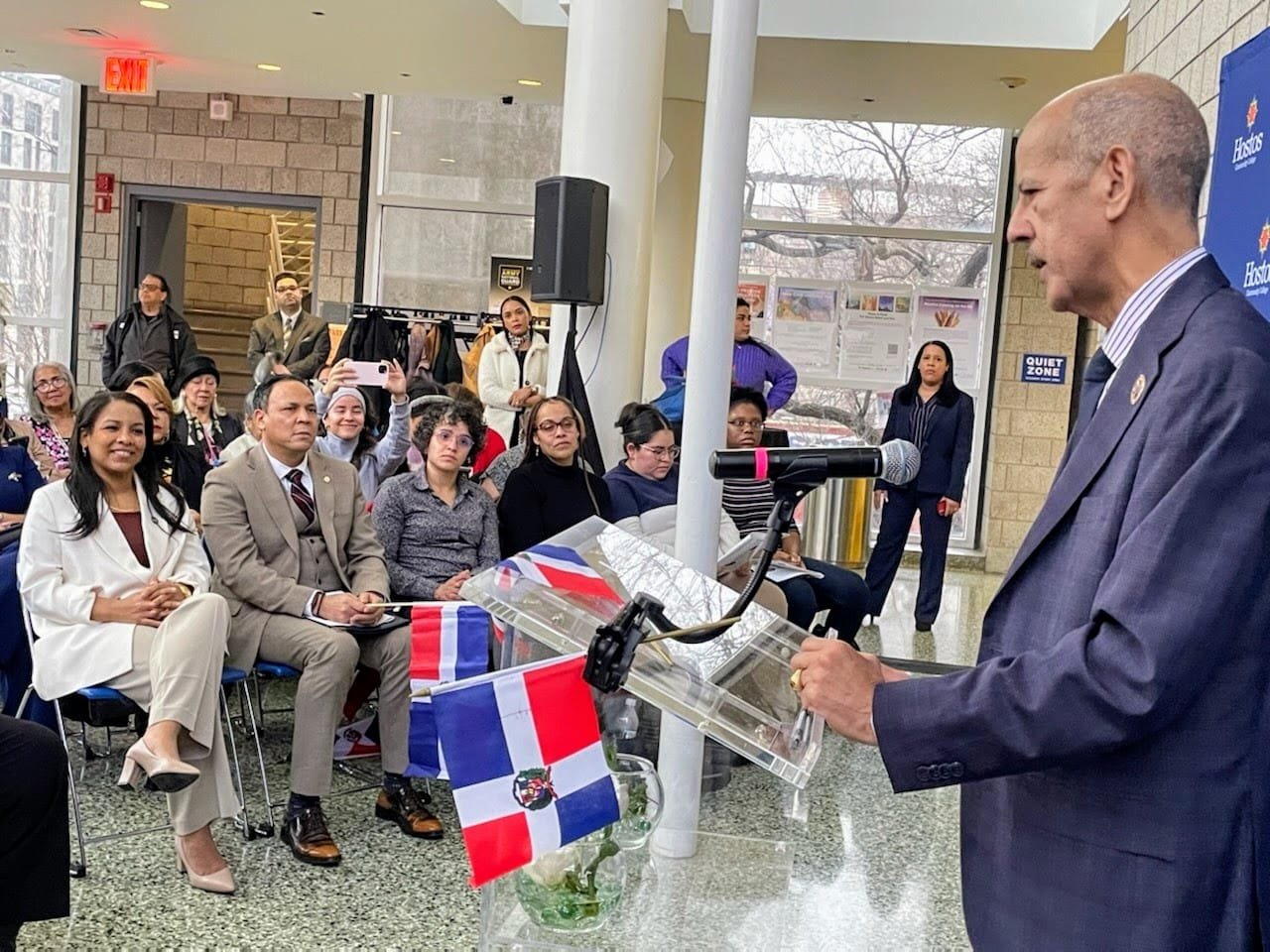 NUEVA YORK.-El centro universitario Hostos Community College, ofreció un homenaje al destacado periodista Adalberto Dominguez, presidente del Instituto Duartiano de los Estados Unidos, en reconocimiento a su trayectoria ejerciendo la profesión por más de 50 años con sentido ético y al servicio de la sociedad.La presidenta del colegio universitario, la Dra. Daisy Cocco De Filippis, se mostró complacida al estar rodeada de colegas admirados y “poder reconocer a dominicanos talentosos y de vocación de servicio” que forman parte de una comunidad que hace grandes aportes a los Estados Unidos.“Al agradecer este reconocimiento que se suma a otros que me han hecho el Consejo de la Universidad Autónoma de Santo Domingo y el Consejo de la Universidad Tecnológica de Santiago, quiero estimular a los jóvenes en el sentido de que en la educación universitaria está asegurado su futuro”, expresó el periodista Adalberto Dominguez.Precisó que en los ideales de Juan Pablo Duarte está impregnada la Republica Dominicana, y como su fundador debemos tenerlo como prototipo en nuestras acciones, respetando las leyes de los Estados Unidos, país que nos acoge, y asumiendo un comportamiento civilista y de respeto a la Constitución, las leyes adjetivas estatales, municipales y de los condados, dando el buen ejemplo”.El concurrido acto, en el que también hubo una presentación de grupos folclóricos y poemas, estuvieron presentes activistas comunitarios, oficiales electos, docentes y trabajadores que se unieron al homenaje a Dominguez, quien ha sido presidente de la filial de la Asociación de Cronistas de Arte y la seccional del Colegio Dominicano de Periodistas en Nueva York.Entre los asistentes se destacan los asambleístas Amanda Séptimo y George Álvarez, los activistas Moisés Pérez; el vice presidente de la unión (sindicato) 1199 SEIU, Víctor Rivera; Fidel Malena, representante regional del condado del Bronx para la Oficina de la Gobernadora Kathy Hochul; y Ofelia Rodríguez.Por su parte, la doctora Ana García Reyes, quien funge como decana de asuntos comunitarios en Hostos Community College, resaltó su alegría por la actividad y “la satisfacción que tenemos de reconocer a Adalberto Dominguez, un periodista de nuestra comunidad que ha trabajado con mucha ética en importantes medios de comunicación tanto en la Republica Dominicana como en los Estados Unidos”.Durante su el ejercicio de la profesión, el periodista Dominguez ha recibido decenas de reconocimientos y proclamas que incluyen del Diario La Prensa, la presidencia de los condados de Manhattan, El Bronx y Queens, la Gobernación y la Alcaldía y el Senado Estatal de Nueva York; y el congresista Adriano Espaillat, la embutidora centenaria Cibao Meat Products, que lo declaro “Orgullo Dominicano 2015”, entre otras instituciones. Pies de fotos a seleccionar:a) El periodista Adalberto Dominguez recibe el galardón que le entregan la presidenta de Hostos Community College, Dra. Daisy Cocco De Filippis, Ana García Reyes y Dainma Martínez. b) El periodista Adalberto Dominguez agradece el reconocimiento de Hostos Community College. d) Grupo folclórico de la folclorista Ramona Torres que deleito a los asistentes al evento.